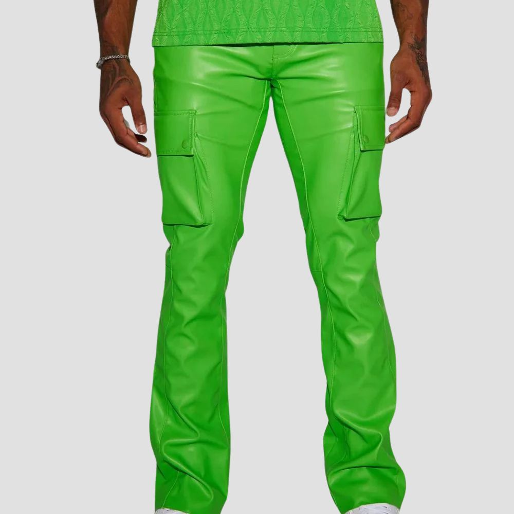 A: We offer Cargo, Stacked, Metallic, Snakeskin, Crocodile, Biker, Trouser, and Suede leather pants — each with unique design elements for various occasions.
